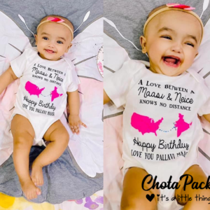 Knock knock…!!! We know you haven’t slept in weeks so here we have done the work for you. Here is Chota Packet Personalized baby romper, sure to brighten your day! Select from our plethora of designs for personalized rompers for your tiny tots and make them look Awww-so cutee in these designs. All that’s left is to add is a First Name, Last Name or even Birth Date and weight to create a one of a kind keepsake! Chota Packet clothing is made from 185 – 230 gsm 100% pure cotton. Machine washable and ok to pop in the dryer at low temp. Our only request is to wash and iron our rompers inside out. Personalize it with the birth date, first name, last name or both and do make them feel your extra care for them!!!